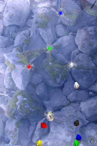 本体を傾けてアヒルを同じ色の渦潮に入れるゲームです。